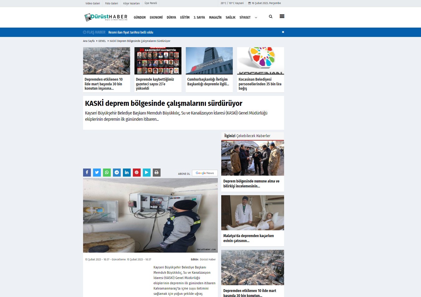 DÜRÜST HABER - 15 ŞUBAT 2023