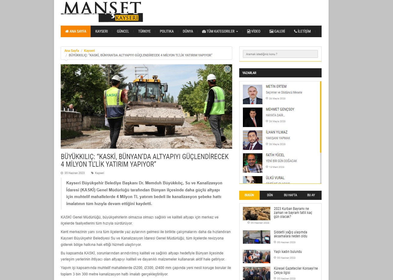 MANŞET KAYSERİ - 05 HAZİRAN 2023