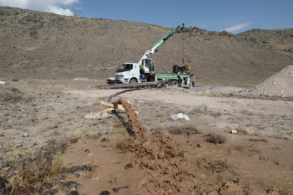 Kayseri Büyükşehir Belediyesi Su ve Kanalizasyon İdaresi (KASKİ) Genel Müdürlüğü, Develi İlçesi Soysallı Mahallesi’nde su iletimini daha güçlü hale getirmek için yeni sondaj kuyusu açtı.